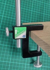 Prensa tipo "C Clamp" para morsa de atado fijas y rotativas.Construida en acero macizo.Apertura de boca de 70 mmPara mastiles de hasta 13 mm.Permite regular la altura mediante perilla ajustable.